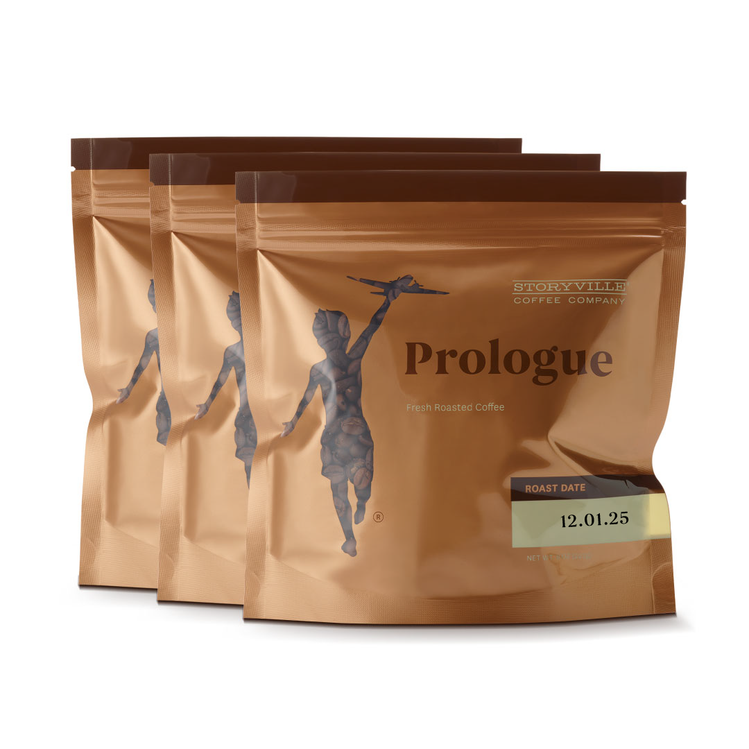 3 bags of our signature blend: Prologue. Fresh, smooth and deeply flavorful whole bean coffee with hints of dark chocolate and vanilla.
