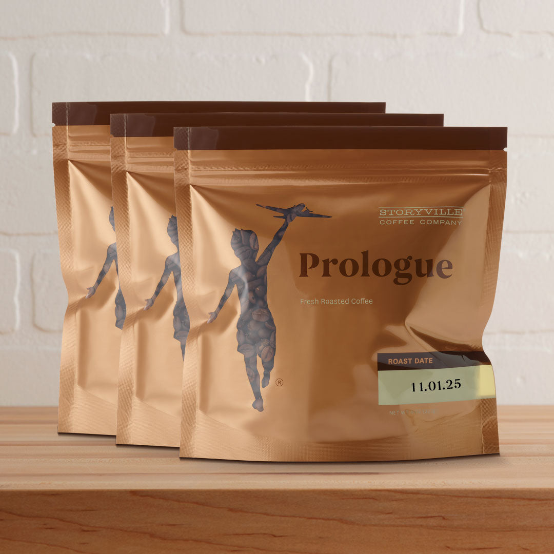 3 bags of our signature blend: Prologue. Fresh, smooth and deeply flavorful whole bean coffee with hints of dark chocolate and vanilla.